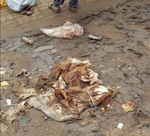 حيث تناثرت مخلفات الأضاحي والأوساخ في محيط منطقة السوق المركزي بالخرطوم، مما أدى لتصاعد روائح نتنة.