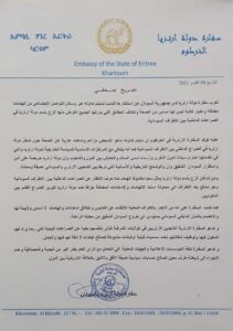 وقال بيان صادر عن السفارة الارترية اطلعت عليه (متاريس) إن محاولات الزج بها هدفه صرف الأنظار عن الصراعات الداخلية في السودان وتبريرا “للصراع القادم بين المكونين”.