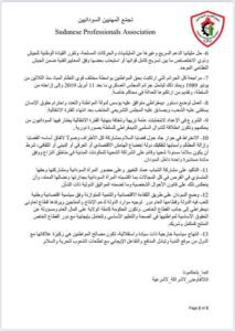 تجمع المهنيين يطرح ميثاق جديد بدون حمدوك وإزالة التمكين