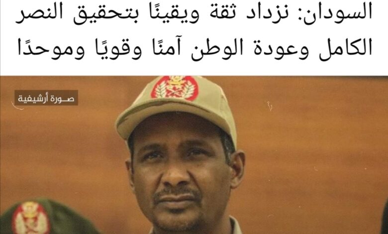 يذكر ان التعليق المرفق بصورة حميدتي يخص تهنئة رئيس مجلس السيادة عبدالفتاح البرهان عبر صفحته بالفيسبوك للشعب السوداني بمناسبة العيد.