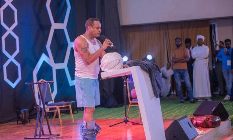 اثار الممثل السوداني محمد تروس عاصفة من الجدل بعد ظهوره في فعالية بكمبالا وهو يخلع ملابسه الخارجية.