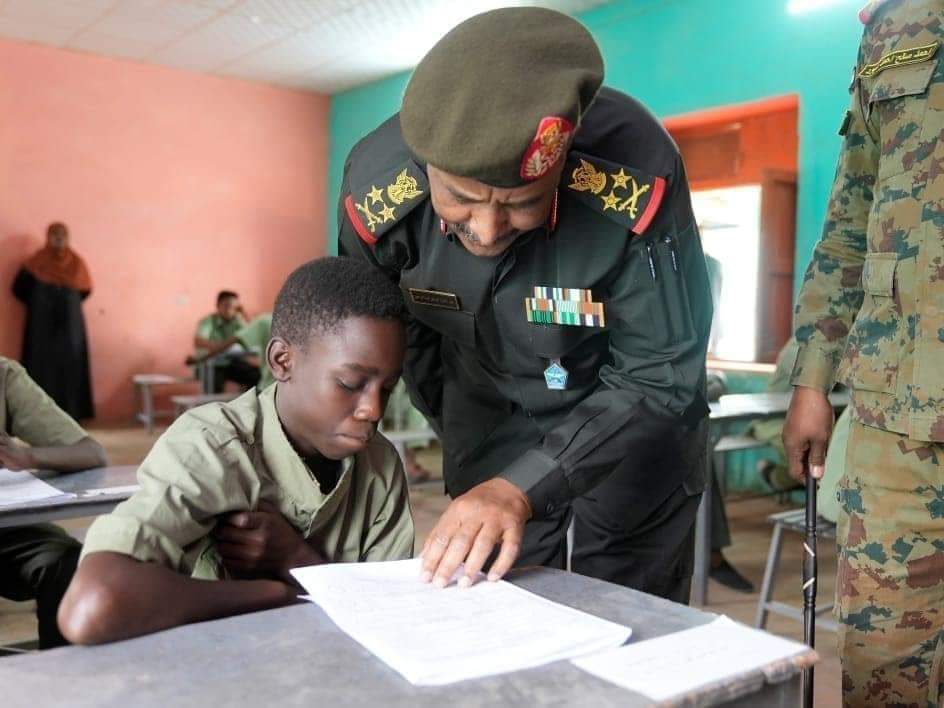 البرهان يتفقد الطلاب الجالسين لامتحانات شهادة الأساس بمدرسة المدرعات